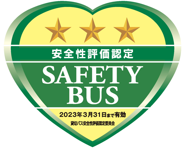 当社は令和2年12月に「貸切バス事業者安全性評価認定制度」の3ツ星の認定を受けました。